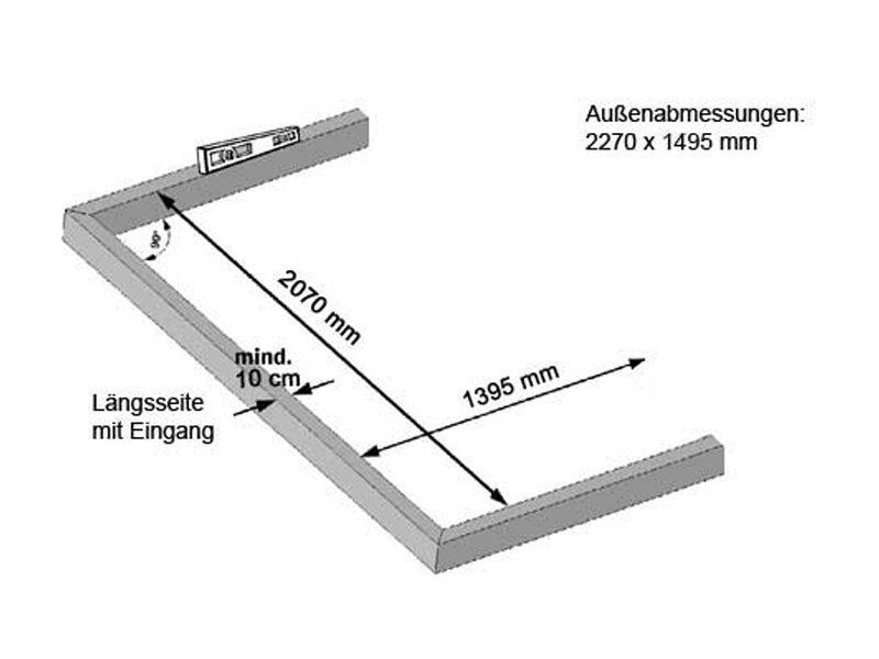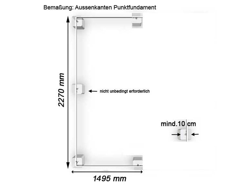 Die Abmessungen für das zu errichtende Fundament entnehmen Sie bitte der Montageanleitung oder der Skizze in der Produktbeschreibung.