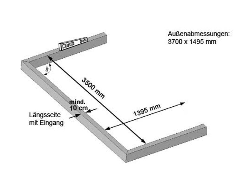 Die Abmessungen für das zu errichtende Fundament entnehmen Sie bitte der Montageanleitung oder der Skizze in der Produktbeschreibung.