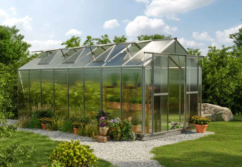 Die Verglasung des SAPHIR 8 erfolgt durch den Einsatz von Hohlkammerplatten, die eine hohe Lichtdurchlässigkeit sicherstellen und gleichzeitig effizient Wärme speichern. Diese Platten sind bruchsicher und beseitigen somit das Risiko von Glasbruch und den damit verbundenen Verletzungen. Sie sind UV-beständig und sorgen für optimalen Schutz vor Sonneneinstrahlung, was das Wachstum Ihrer Pflanzen stimuliert und lebendiger macht.