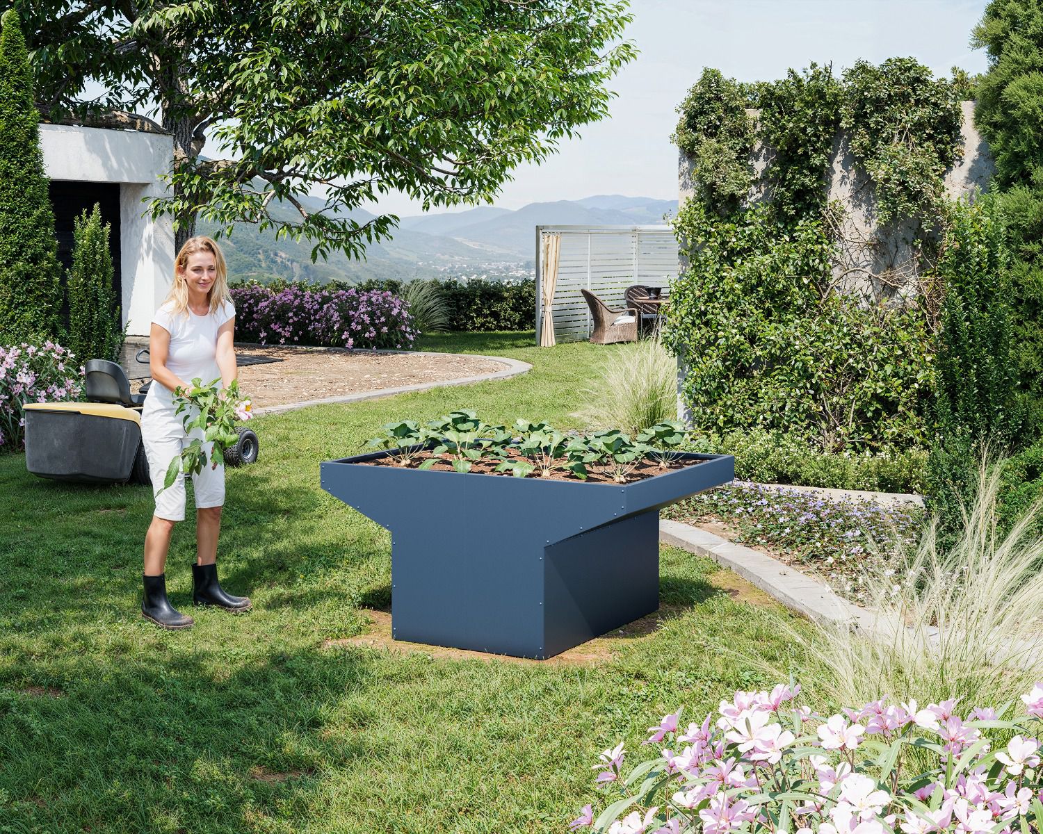 Das Hochbeet sorgt für gute Bedingungen, damit die Pflanzen gesund wachsen können. Es ist so gebaut, dass Luft gut zirkulieren kann und Wasser richtig abfließt, was den Pflanzen zugutekommt. Durch die angenehme Höhe kann man bequem arbeiten, ohne sich bücken oder auf den Knien sitzen zu müssen. Das macht das Gärtnern viel einfacher und rückenschonend. Außerdem ist das Hochbeet sehr haltbar und pflegeleicht. Der Stahl und die spezielle Beschichtung machen es widerstandsfähig gegen schlechtes Wetter, sodass es lange hält und gut aussieht.