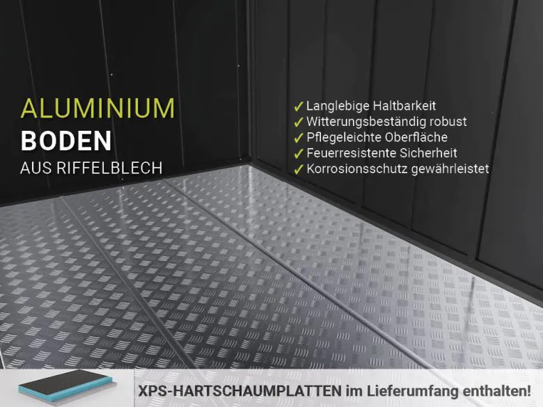 • Sie können das Metallgerätehaus mit oder ohne Fußboden bestellen.