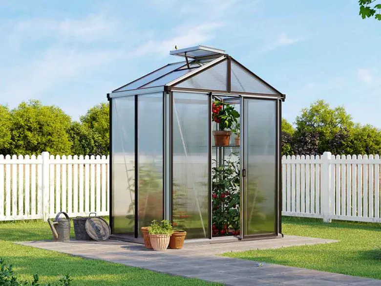 Unser Gewächshaus COMPACT 2 ist mit 10 oder 16 mm Doppelstegplatten aus Polycarbonat verglast. Dieses hochwertige Verglasungsmaterial zeichnet sich durch exzellente Isoliereigenschaften aus, indem es effektiv Wärme speichert und UV-Strahlen abschirmt. So entsteht ein optimales Wachstumsklima für Pflanzen, selbst in den kältesten Monaten. Zudem sind die Platten äußerst robust, widerstandsfähig und leicht, was die Handhabung und Montage vereinfacht. Mit ihrer hohen Lichtdurchlässigkeit unterstützen sie ein gleichmäßiges Pflanzenwachstum und machen unsere Gewächshäuser zur idealen Wahl für den Ganzjahresanbau.