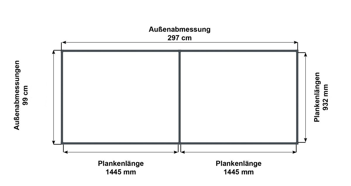 Maße (L x B x H): 297 x 99 x 39 cm