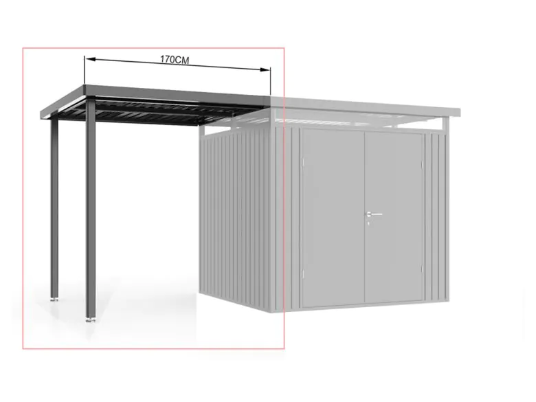 Es schafft zusätzlichen Stauraum im Freien, schützt vor Regen, Schnee und UV-Strahlung und fügt sich harmonisch in das moderne Design des Gerätehauses ein.