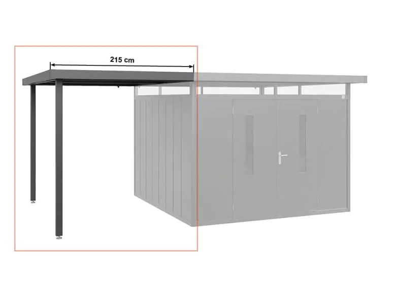 Es schafft zusätzlichen Stauraum im Freien, schützt vor Regen, Schnee und UV-Strahlung und fügt sich harmonisch in das moderne Design des Gerätehauses ein.