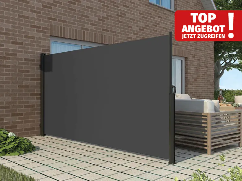 Erleben Sie den Sommer im Schatten – mit unserer hochwertigen Seitenmarkise, die Sie ganz einfach von Hand öffnen und schließen können!