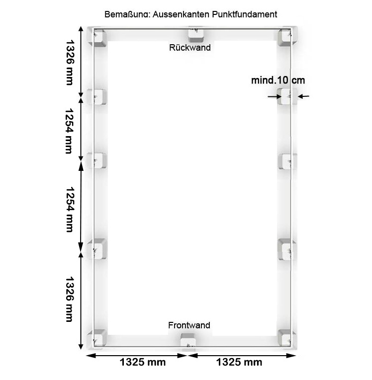 DIE GENAUEN ABMESSUNGEN FÜR DAS ERRICHTEN EINES FUNDAMENTS ENTNEHMEN SIE BITTE UNSEREM DATENBLATT!