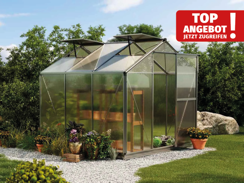 Die Doppelstegplatten brechen im Gegensatz zu Glas das Licht ohne Brennglaseffekt und bieten eine gute Wärmedämmung für harmonische Temperaturen im Gewächshaus. Zudem sind sie leichter als Glas, lassen sich einfach montieren und sind weitestgehend bruchsicher. Die solide Alumkonstruktion mit verstärkten Hohlkammerprofilen und langlebigen Kunststoffverbindern, die durch die Verstärkung mit Glasfasern besonders widerstandsfähig sind, sorgt für eine hohe Stabilität und Langlebigkeit. Die Schrauben bestehen aus rostfreiem Edelstahl, damit Ihr Gewächshaus auch nach Jahren noch wie neu aussieht.
